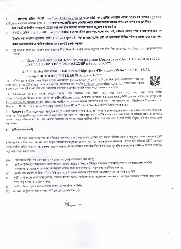 BOMD Teletalk Job Circular Important Details